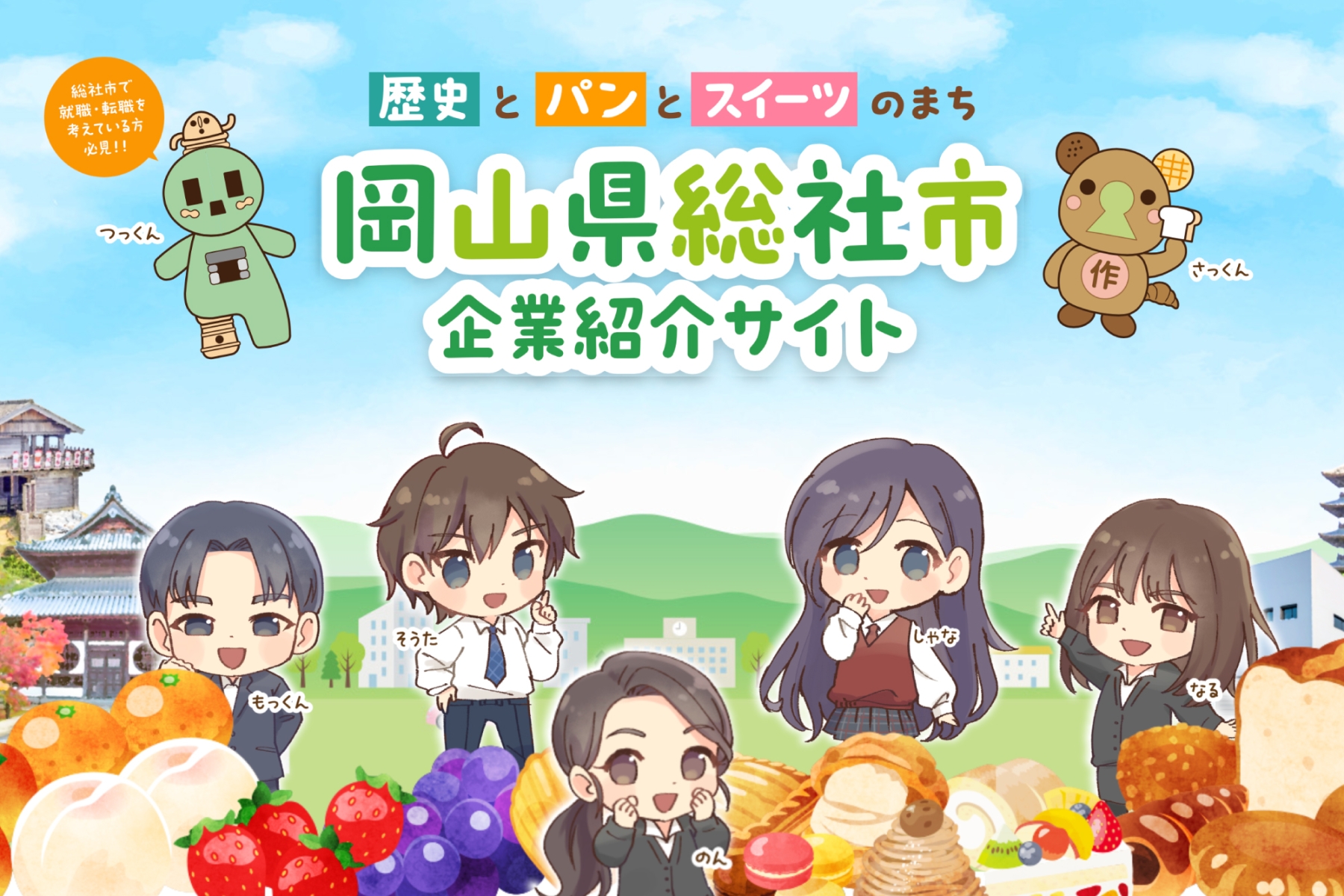 “岡山県総社市企業紹介サイト”開設&公開!! 現在、“企業探検ツアー”は作成中ですが、“総社の企業を知る”ではそうじゃのミライで紹介する企業情報など紹介しています。さまざまなキャラクターも登場します!! ぜひご覧・・・