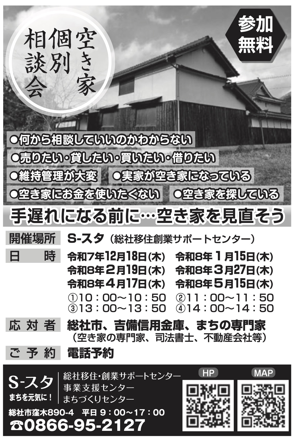 S-スタ“空き家個別相談会”が、2026年2月19日(木)・3月27日(木)・4月17日(木)・5月15日(木)に開催(参加無料)されます!!