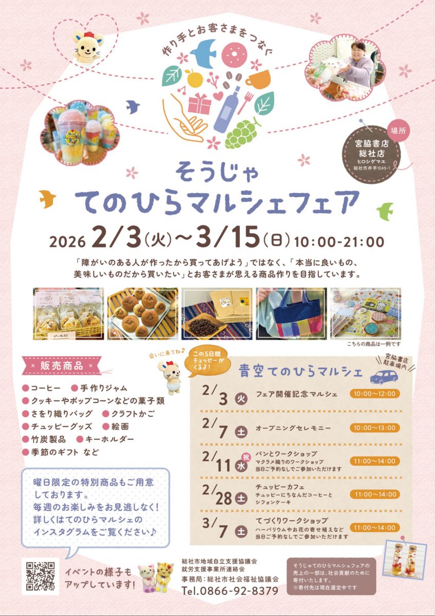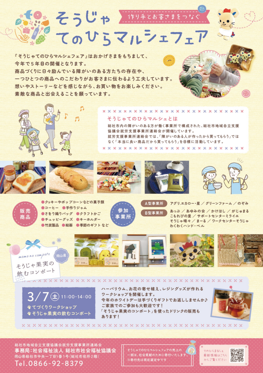 <作り手とお客様をつなぐ“そうじゃてのひらマルシェフェア”開催中!!(3月15日まで)>〜“障がいのある人が作ったから買おう...”ではなく“本当に良いもの&美味しいもの!!”を目指しています!!〜