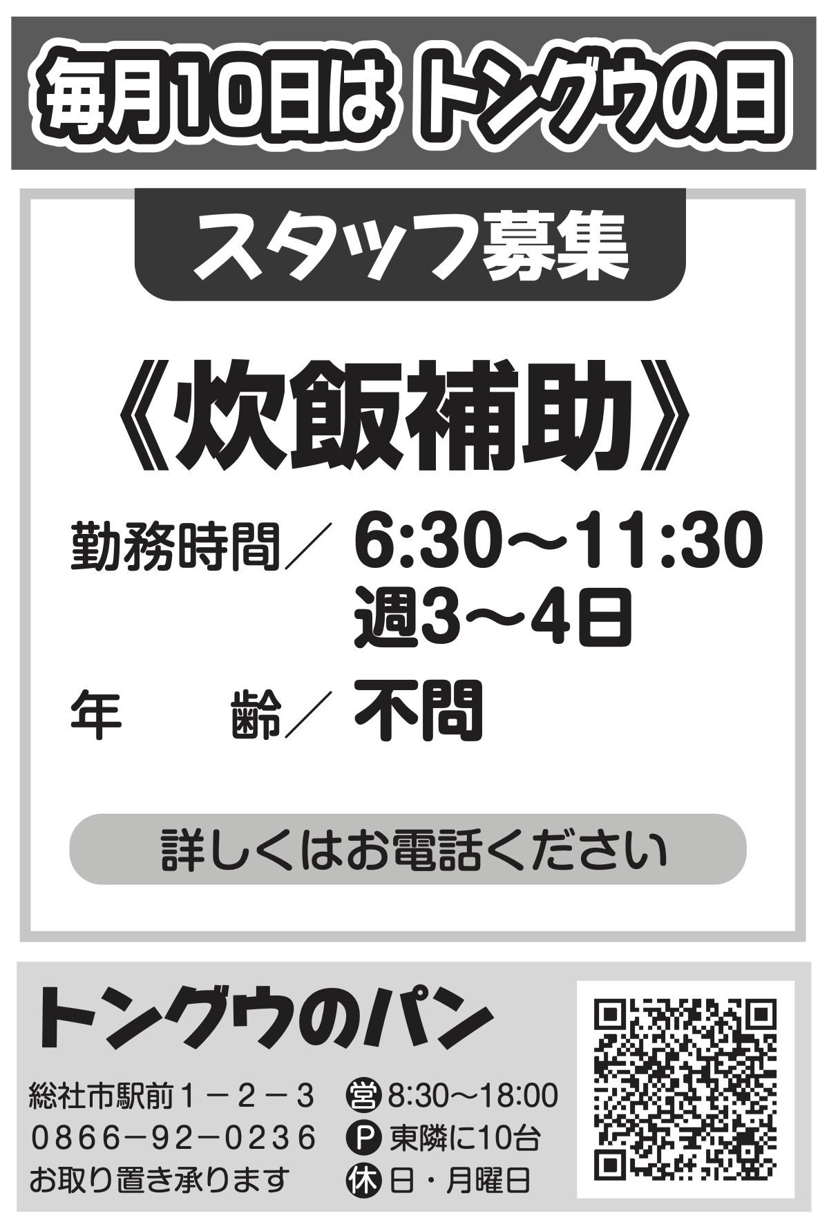 商工ニュース(6月1日発行)のトングウさんの広告部分を切り取り、800円(税込)以上のお会計の際にスタッフにお渡しくださいね。<※パン商品のみ/他券と併用できません/6月10日(トングウの日)は除く/有効期限:2025年6月28日(土)まで>