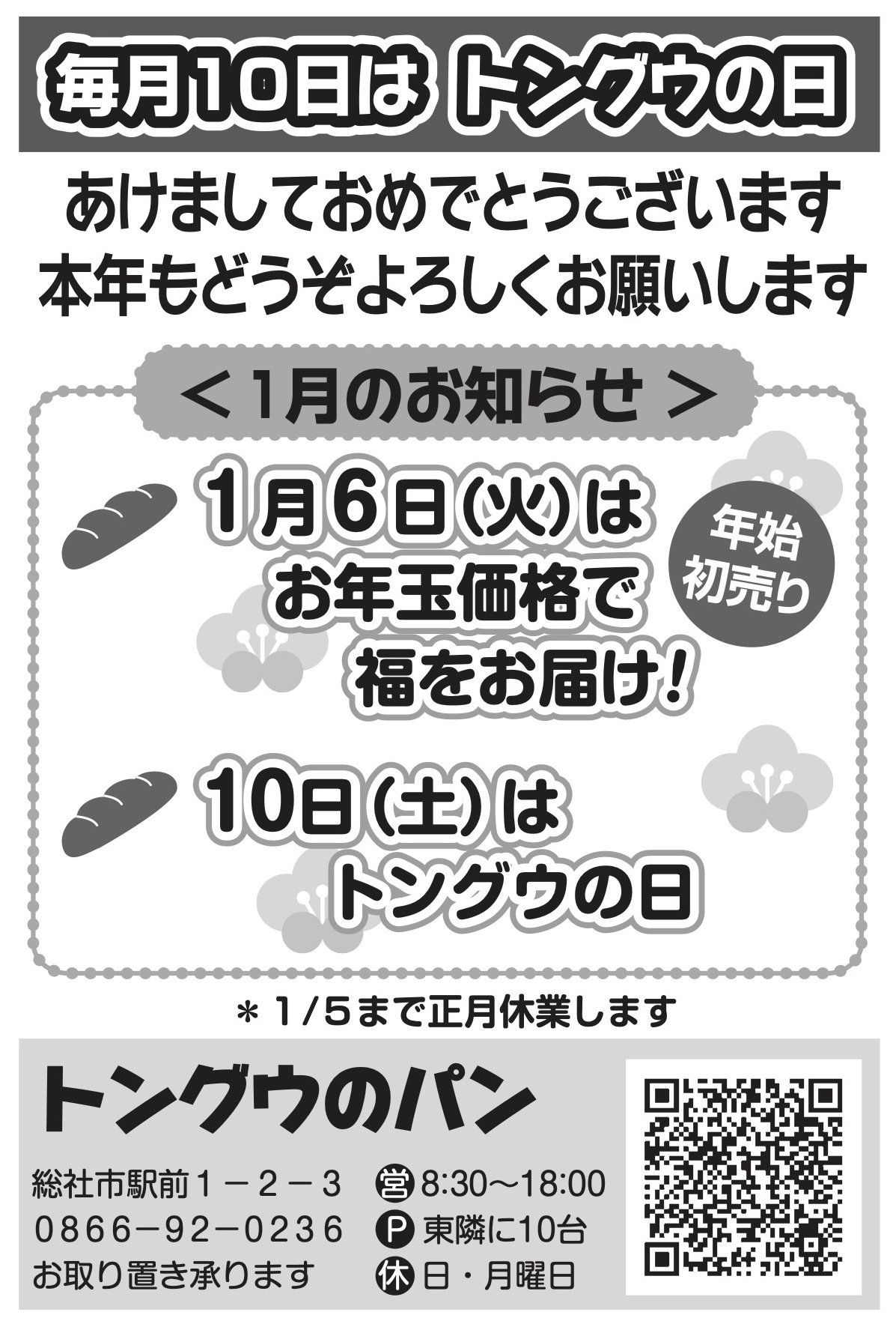 創業100年が見えてきた老舗パン屋ベーカリー トングウさん、年始初売り1月6日(火)は“お年玉価格!!” 1月10日(土)は“トングウの日”で福をお届け!!