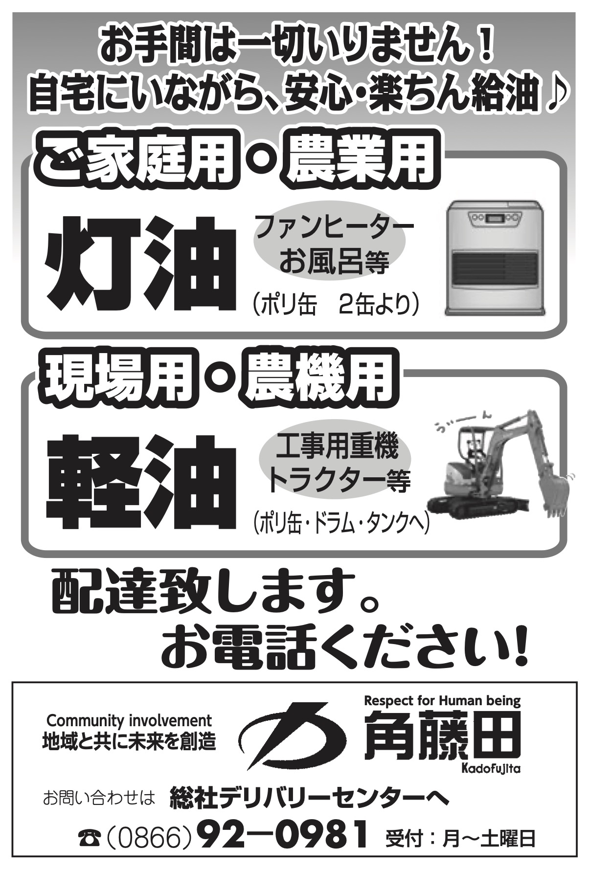 そんなこれからどんどん寒くなるシーズンにうれしい、自宅いながら安心・楽ちん給油株式会社 角藤田の“燃料配達”をぜひ、ご利用くださいね。 仕事の現場や農機用の軽油も配達してくれますよ!!