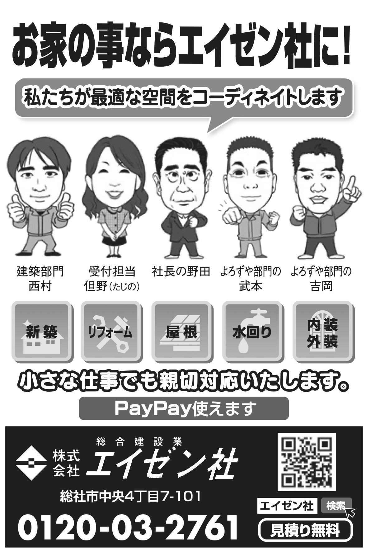 <株式会社エイゼン社“お家のことならエイゼン社に!!”>〜創業63年の実績&安心!!“お客様のご要望に応え最適な空間をコーディネイト”小さな仕事もおまかせ!!(PayPayも使える!!)〜